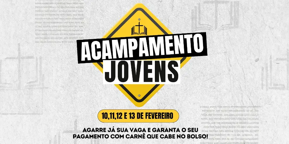 O acampamento acontecerá nos dias 12/07 a 14/07 de 2024! Não perca a oportunidade de passar um tempo de comunhão e aprendizado ao lado de quem você ama.
